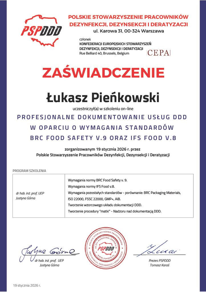 Nasza firma jest certyfikowana przez jednostki szkoleniowe PSPDDiD – gwarantując jakość, skuteczność i profesjonalizm. Staramy się wkładać wiedzę i zaangażowanie w każdą usługę którą wykonujemy.